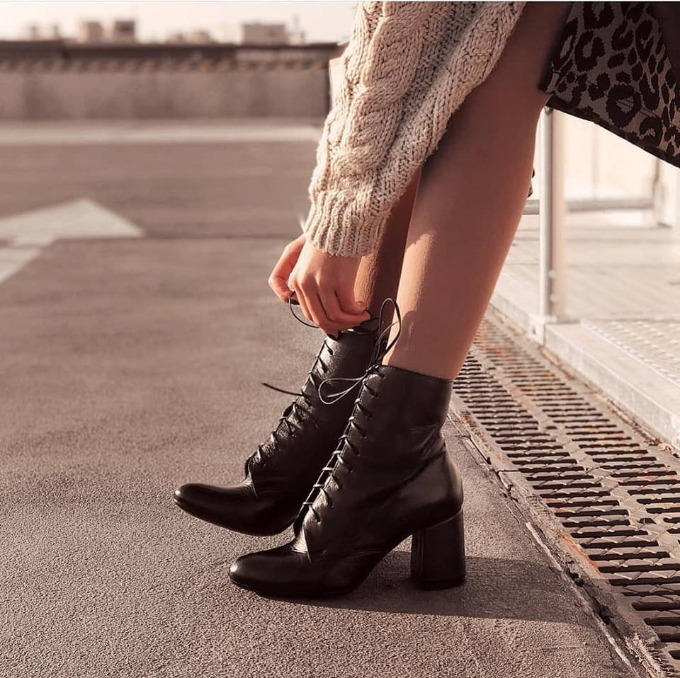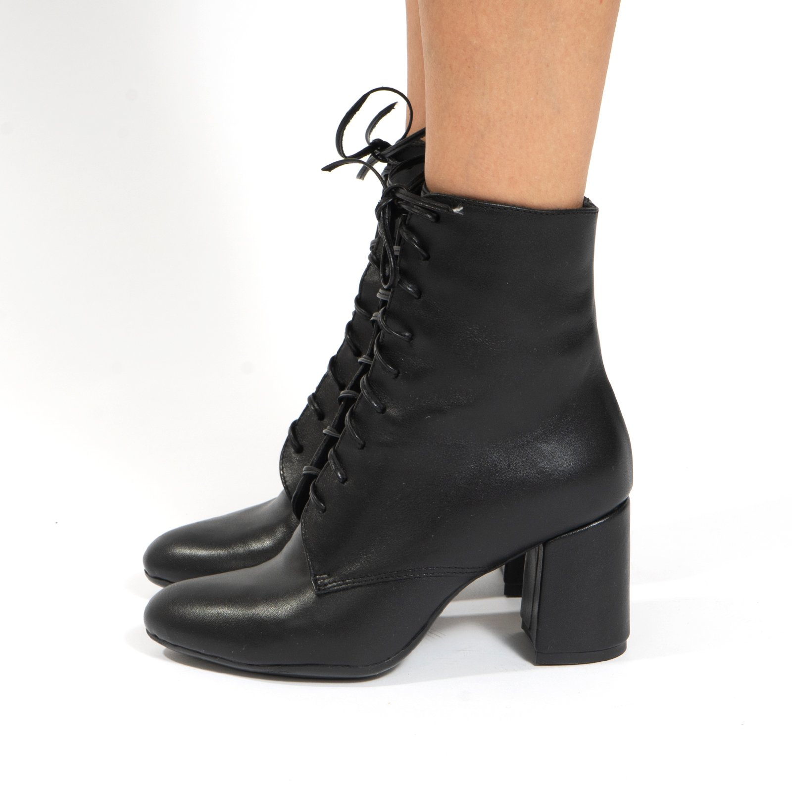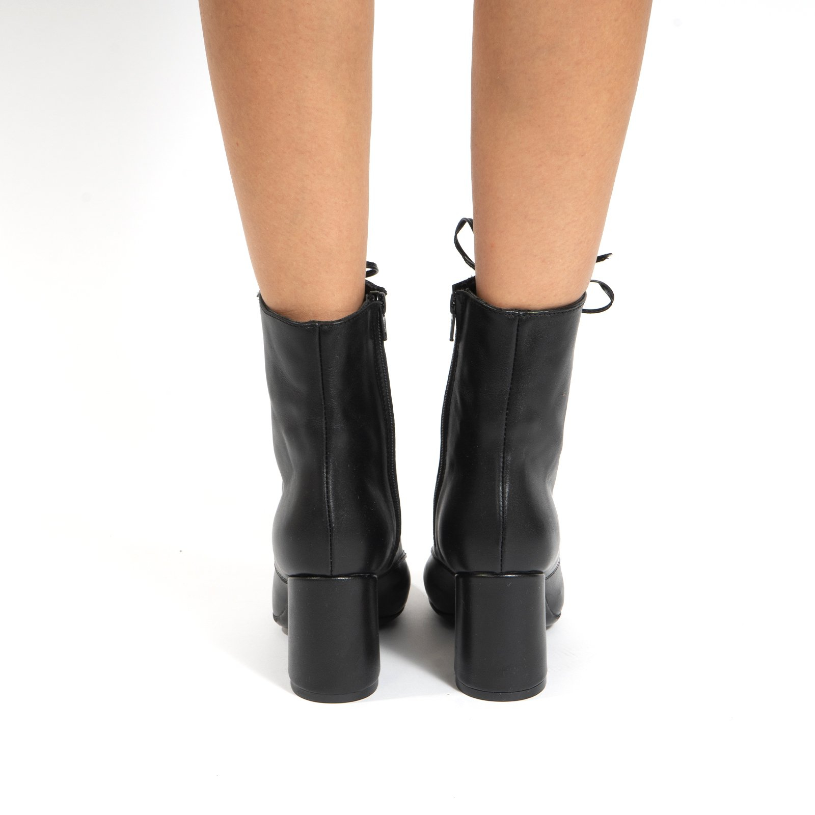 Ghete din piele naturala neagra cu siret si toc gros,foarte stabil imbracat in piele.Pentru o inchidere mai rapida ghetele sunt prevazute cu fermoar pe partea de lateral interior.