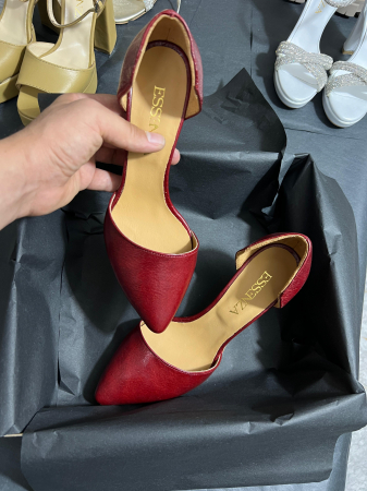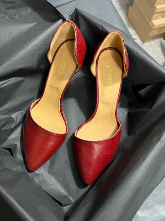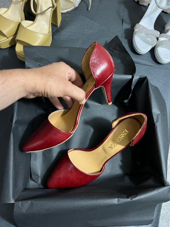 Pantofi stiletto decupati (interior/exterior),realizati din piele naturala rosie.