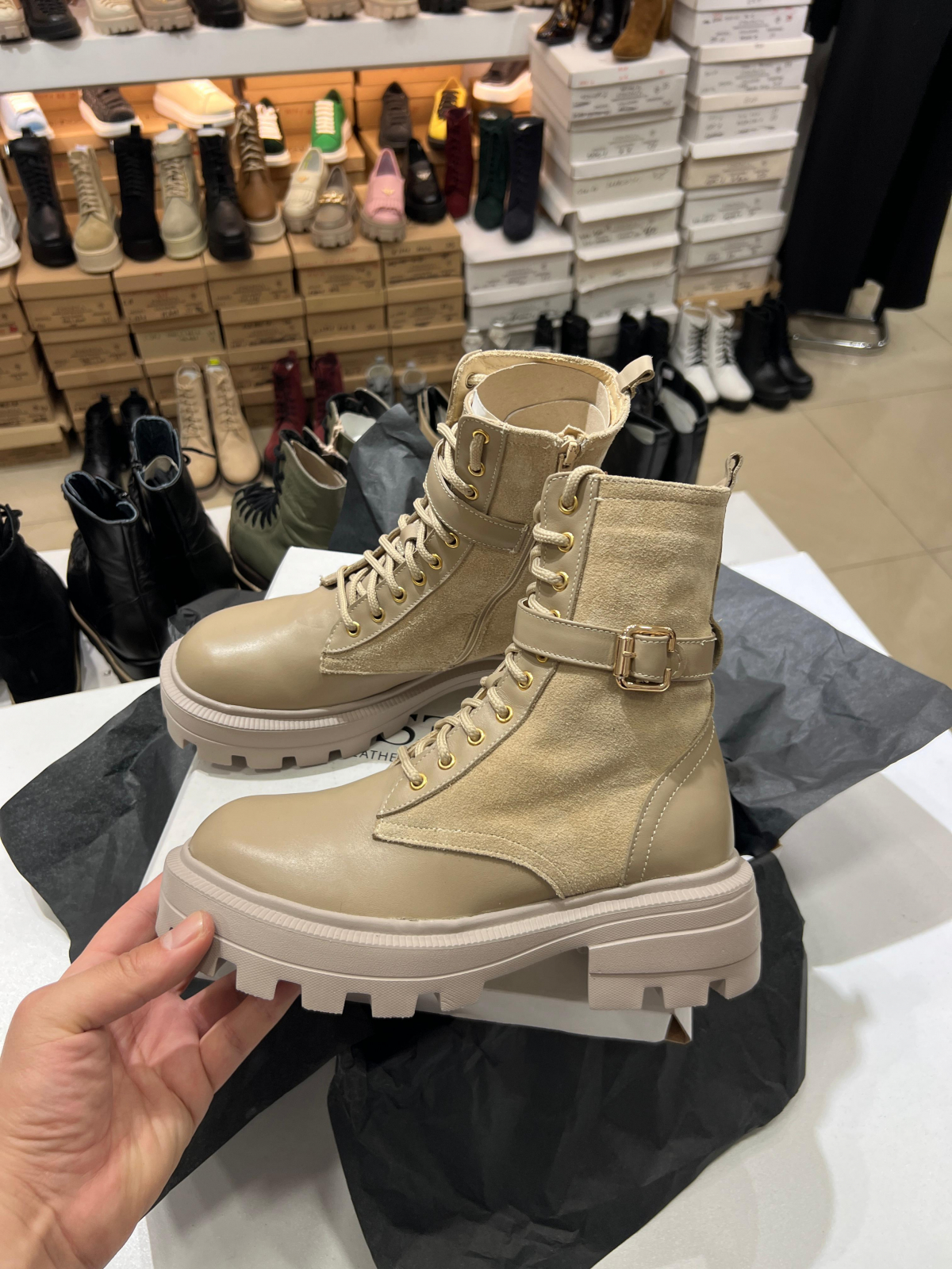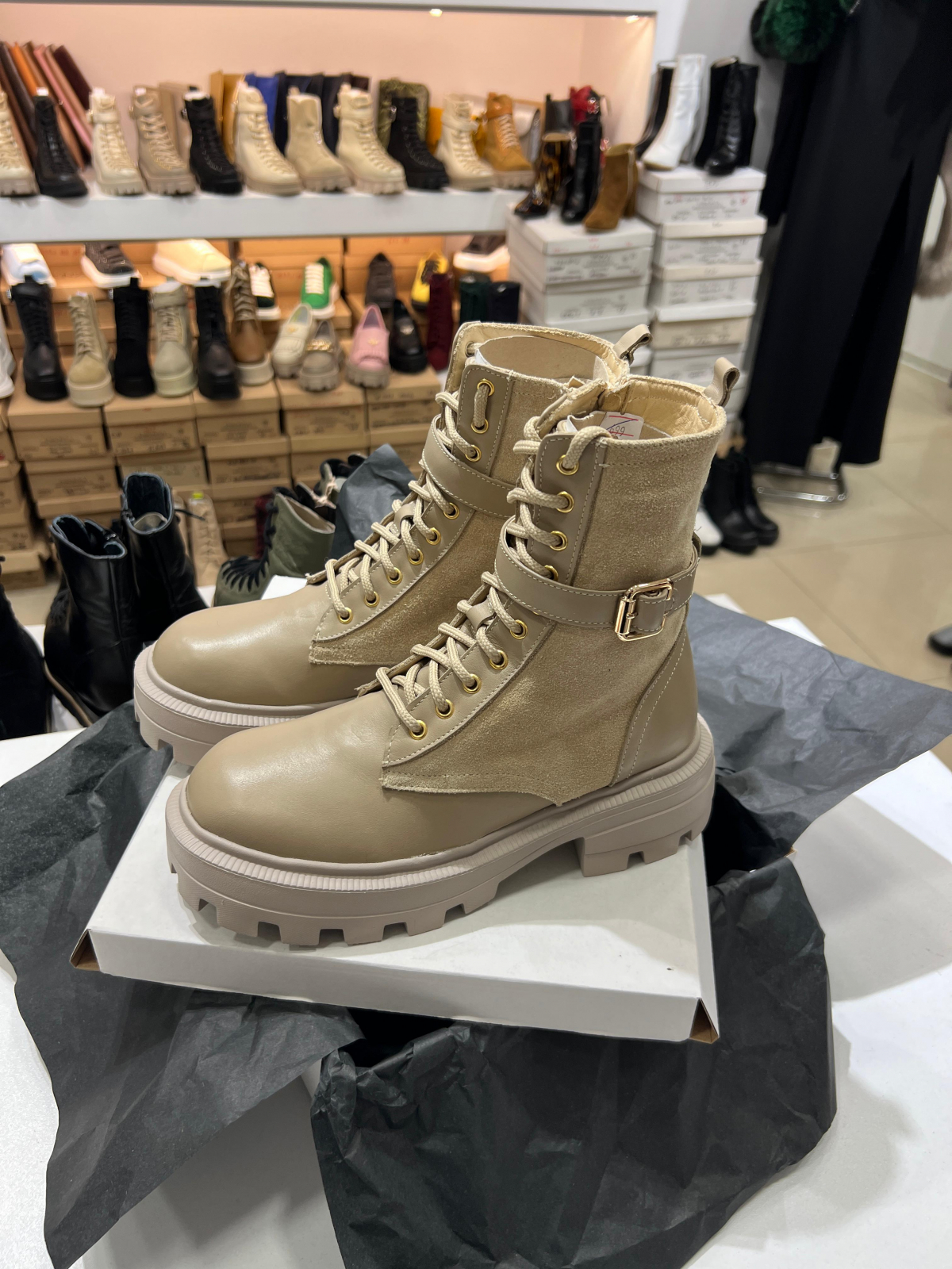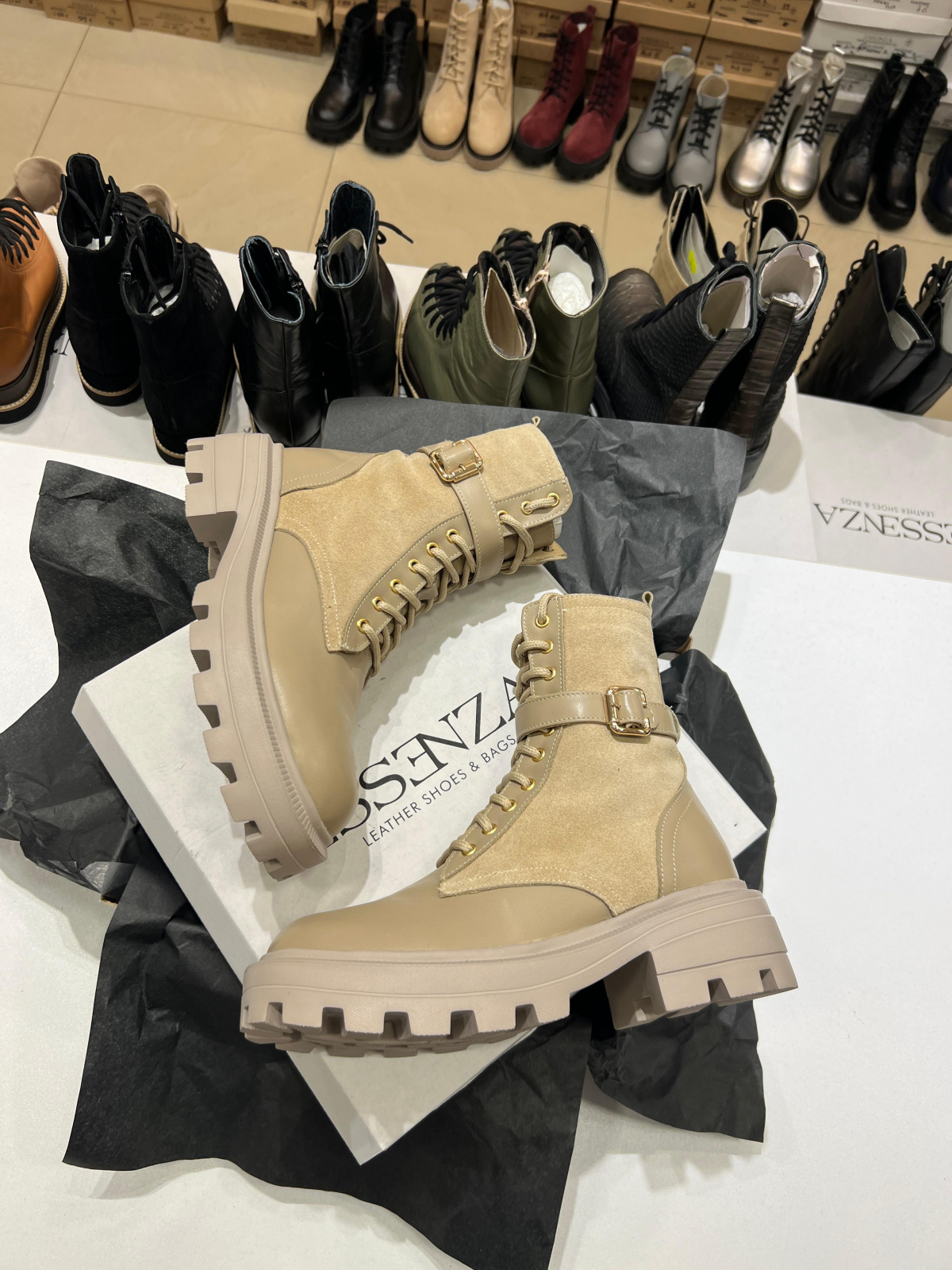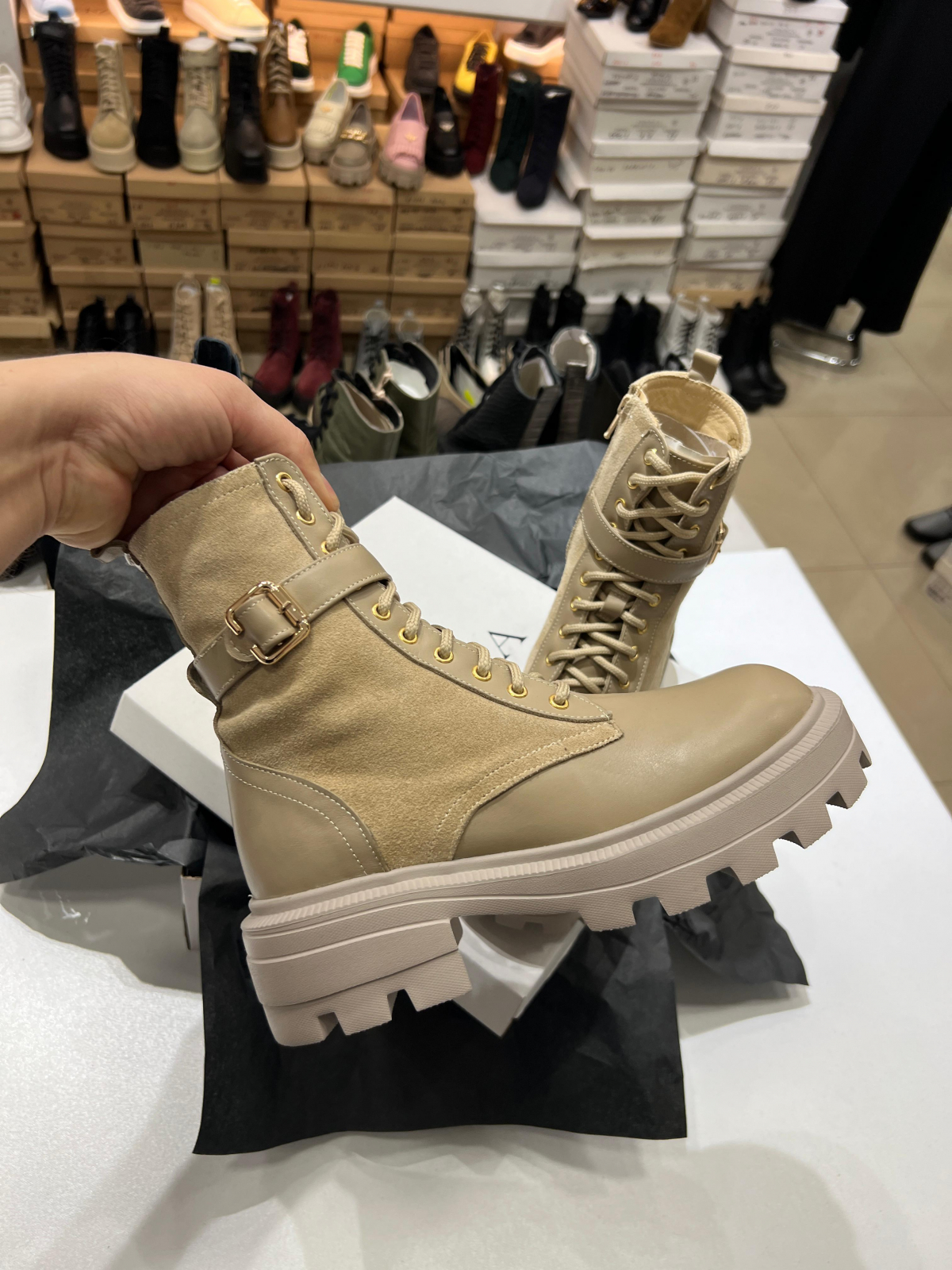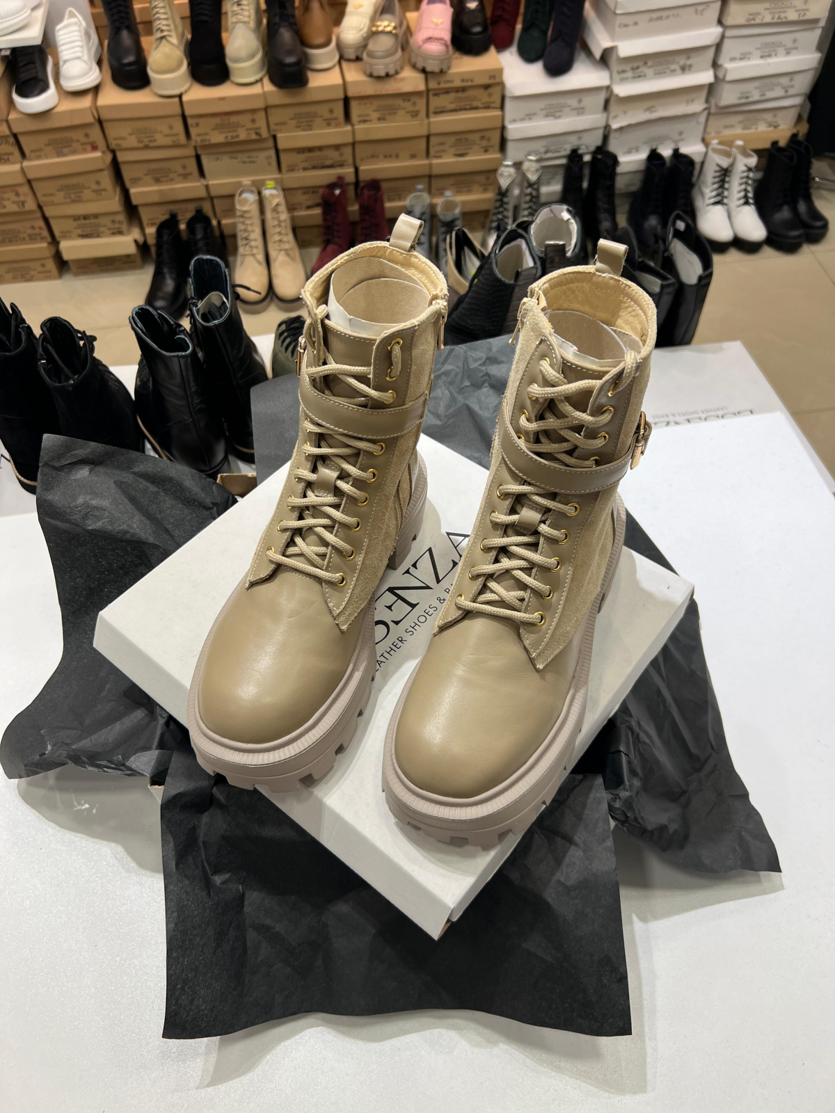 Bocanci cu siret si bareta cu catarama , din piele naturala. Pentru o incaltare mai usoara, bocancii sunt prevazuti cu fermoar pe lateralul interior a piciorului.