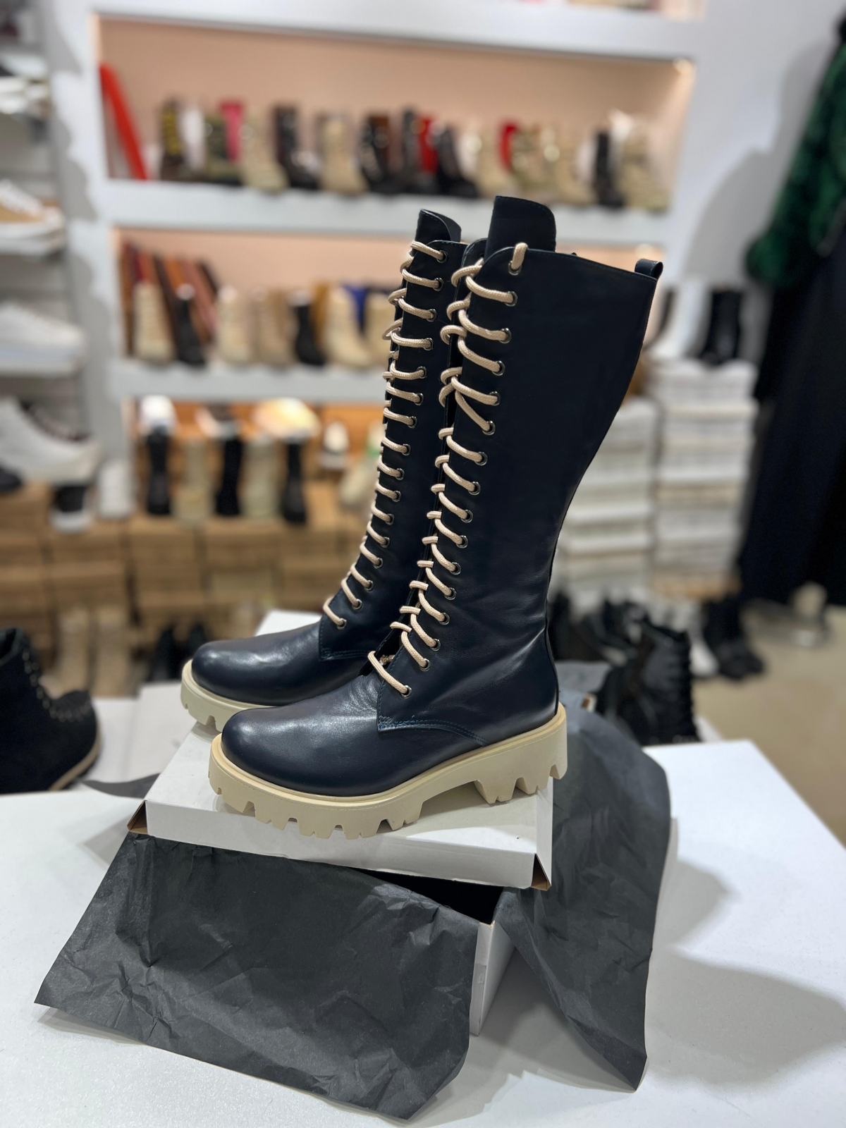 Bocanci cu siret si talpa antiderapanta, din piele naturala bleomarin