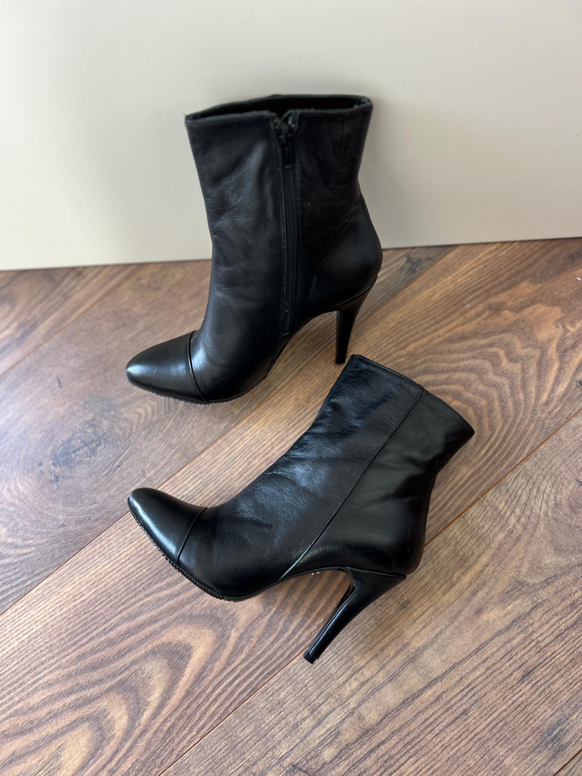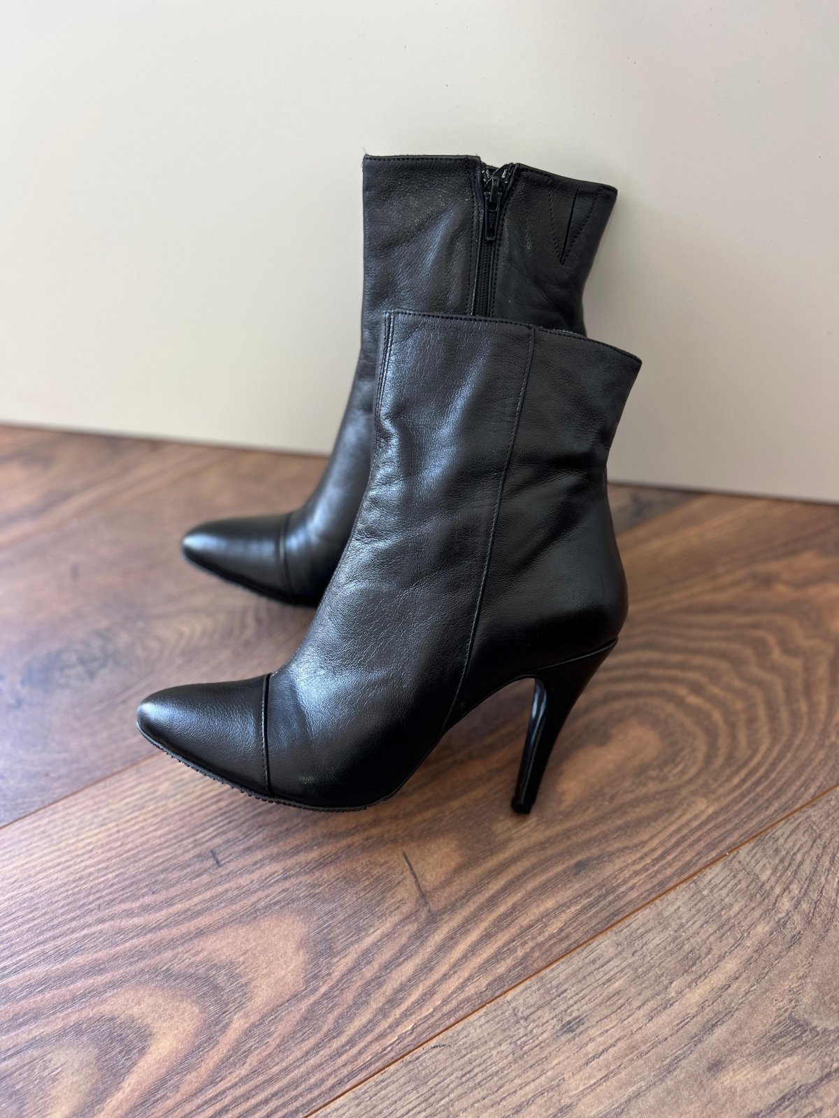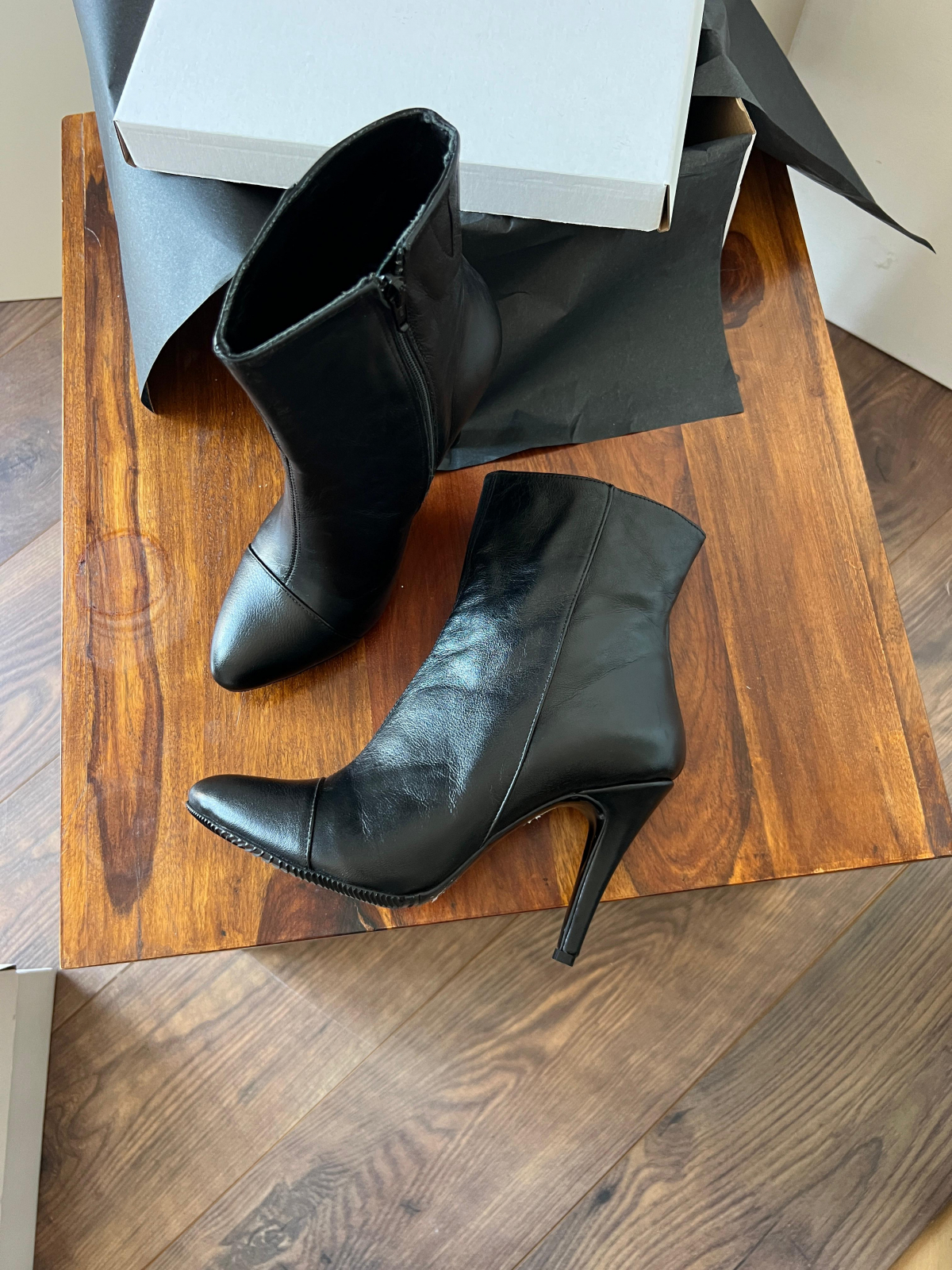Ghete cu varf semiascutit, din piele naturala  neagra