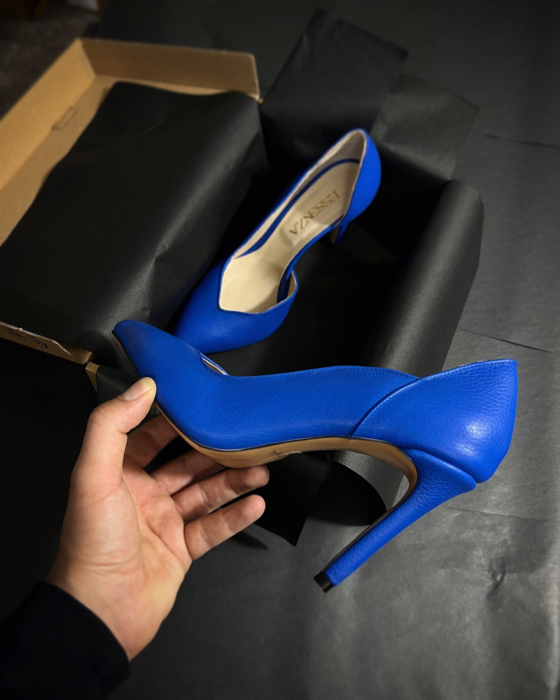 Pantofi stiletto din piele albastru cobalt,cu decupaj interior si exterior intr-o linie eleganta.